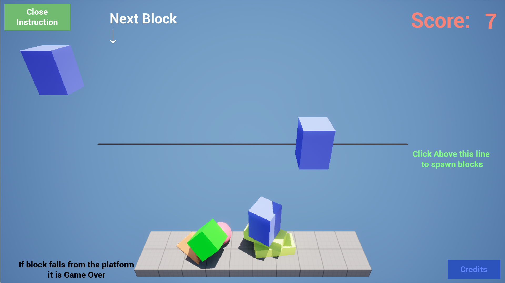 A simple game where you drop blocks. Stack as many blocks as possible. If a block falls off the floor, it's game over.